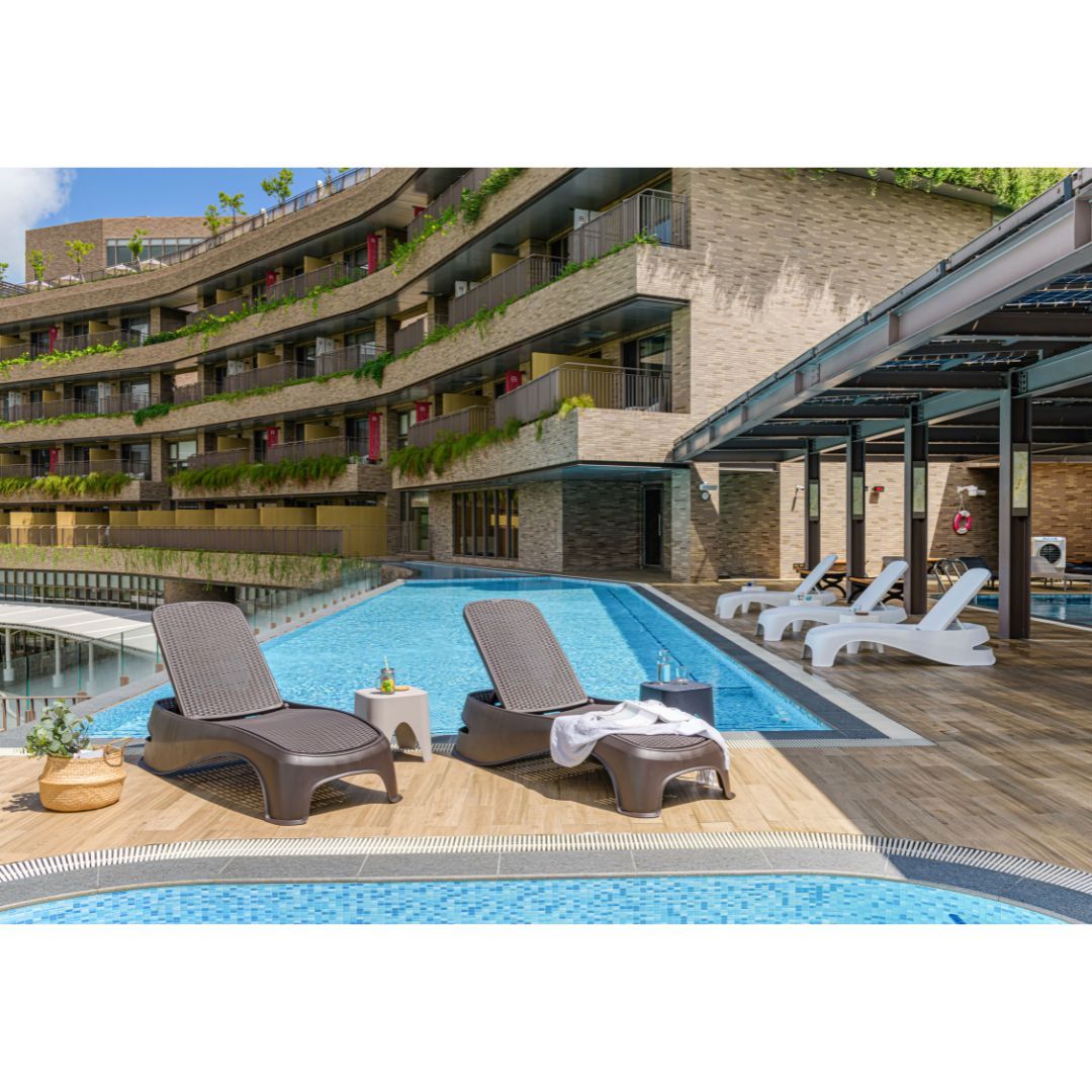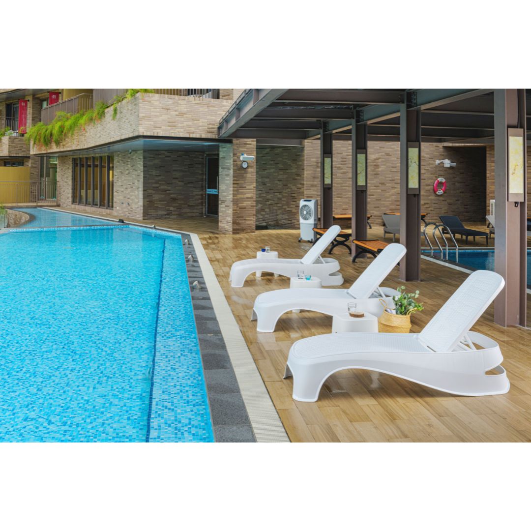 Camastro fabricado de una sola pieza en polipropileno de alta resistencia y duración para intemperie, resistente a los rayos uv y al ambiente salino. Terminado imitación mimbre. Ideal para terrazas y hotelería.