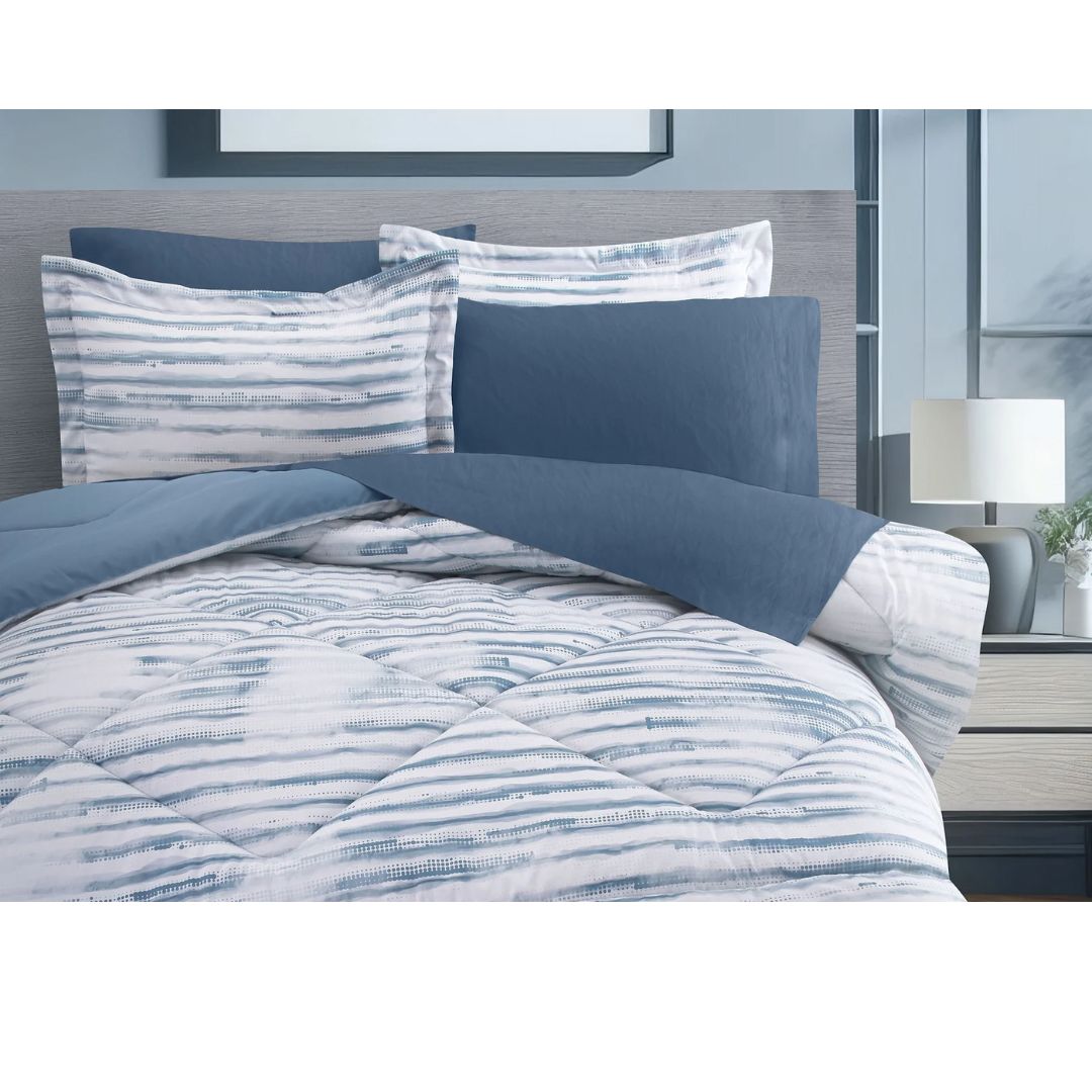 Edredón fabricado con las telas de la más alta calidad, los tonos azules y grises le darán a tu habitación, la calidez que necesitas para descansar. Nuestro edredón Edsel incluye: