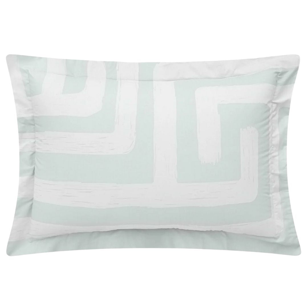 Líneas entrelazadas en forma de laberinto recorren un fondo menta y rosa fresco, trazando caminos en un delicado tono blanco que invita a explorar. Este diseño, lleno de simetría y misterio, evoca la calma de la naturaleza con un toque de modernidad.