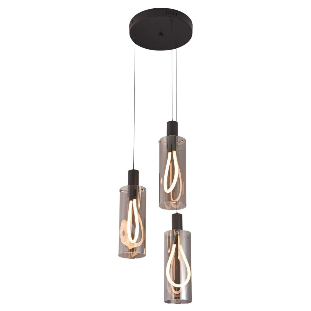 Lámpara colgante color negro, pantalla de vidrio color ahumado, con filamentos en LED, perfecto para cualquier área de tu hogar u oficina.