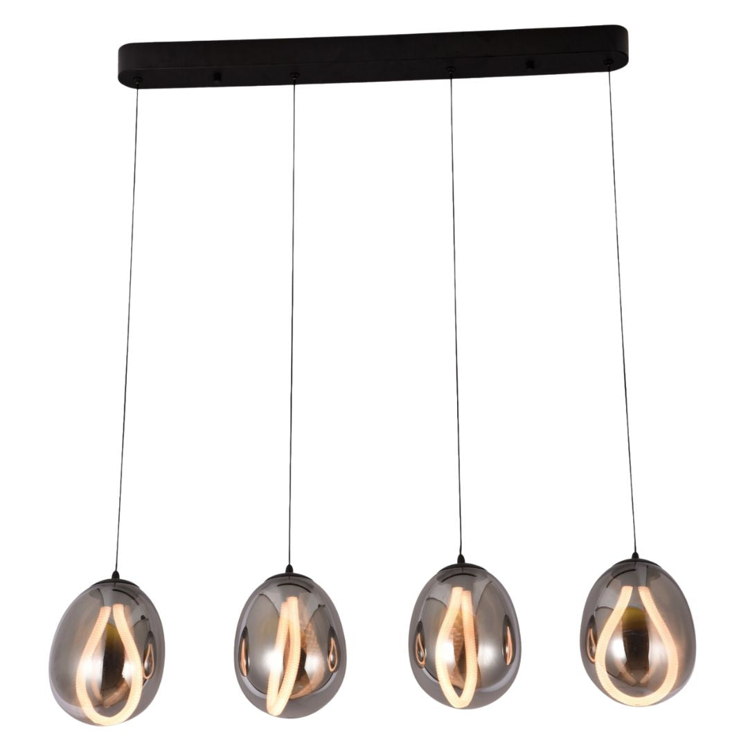 Lámpara colgante color negro, pantalla de vidrio color ahumado, con filamentos en LED, perfecto para cualquier área de tu hogar u oficina.