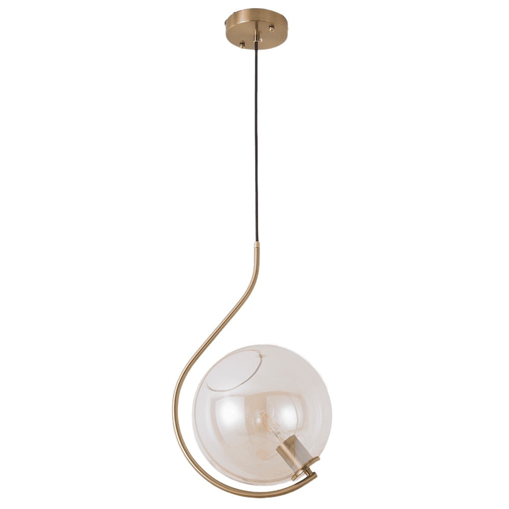 Lámpara de cuerpo metálico color latón, pantalla esférica de vidrio ámbar, luz cálida de intensidad media, ajustable para adaptarse a cualquier altura según sea necesario, perfecto para cualquier área de tu hogar u oficina. No apto para sitios húmedos, tropicales o exteriores.