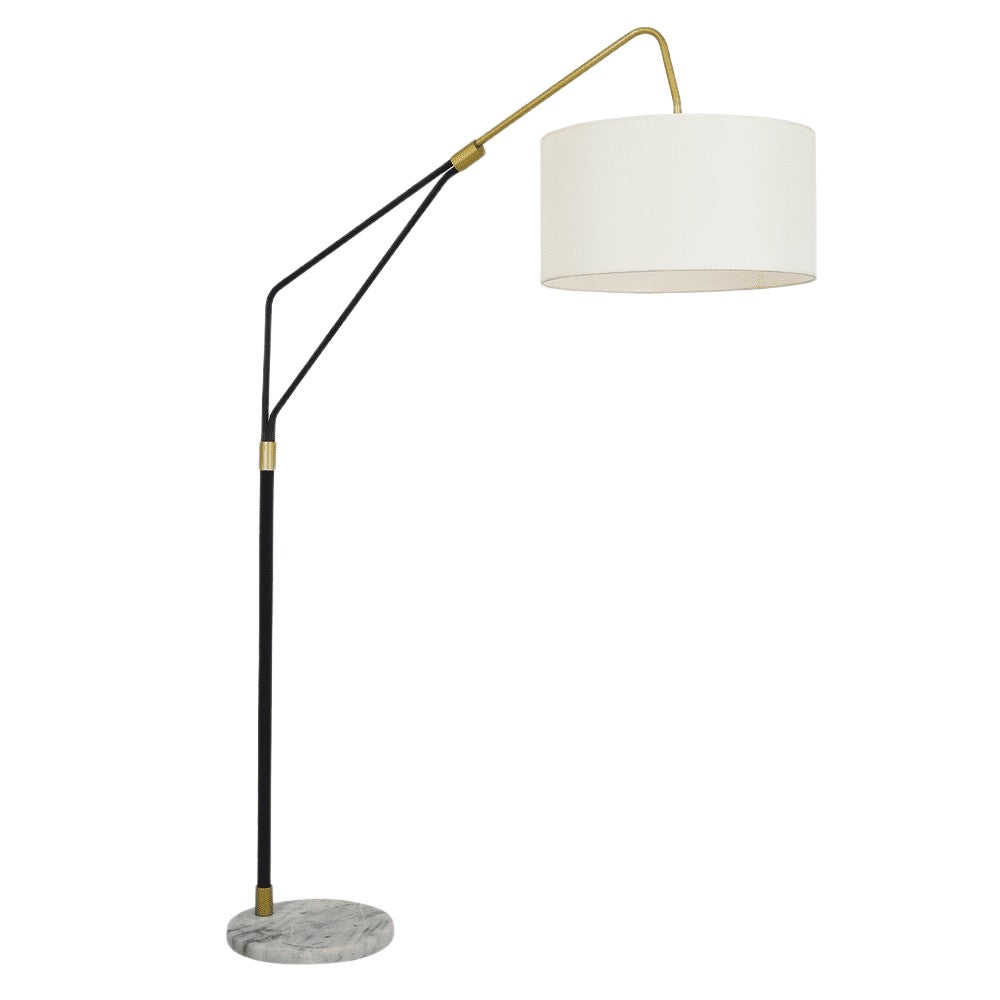 Lámpara de cuerpo metálico negro y oro, con base de mármol gris, pantalla en tela color beige, perfecto para cualquier área de tu hogar u oficina. No apto para sitios húmedos, tropicales o exteriores.