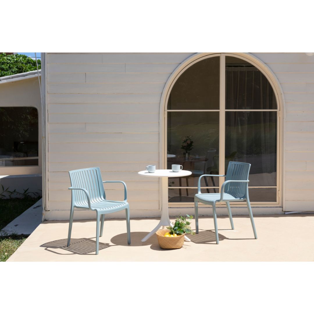 Silla fabricada en polipropileno de alta resistencia y duración para. intemperie, resistente a los rayos uv y al ambiente salino. Ideal para terrazas, restaurantes, hotelería.